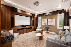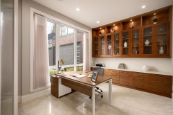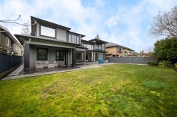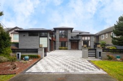 Don’t be fooled by the address. This exceptional owner-built luxury residence sits on a 10,004 sq.ft. lot with an additional 70 ft setback from the quiet portion of Railway Ave, creating a remarkably private and tranquil setting. Mature trees provide excellent natural noise buffering, resulting in a quiet interior and backyard. Meticulously maintained and constructed with top-tier materials throughout, the home showcases extensive wood detailing, high-end German Miele appliances, an oversized wok kitchen, marble and premium stone finishes, soaring ceilings, and custom built-in storage. The upper level features two expansive primary suites, including a spa-inspired ensuite with sauna. Offers 5 bedrooms in total, including a 1-bedroom legal suite, media room, and more. Must see!