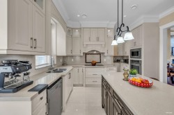 Exquisite luxury residence in Richmond’s prestigious Seafair neighborhood! This 3,570 sqft home sits on a beautifully landscaped 7,000 sqft lot in a quiet, safe community. Features include a stately linear façade, lush front/back gardens, and outstanding curb appeal. Inside boasts high-end s/s appliances, antique maple kitchen, quartz counters, engineered hardwood floors, intricate moldings & soaring ceilings in living, family & dining rooms. A/C, HRV, and abundant natural light add modern comfort. Main floor includes 1-bed suite w/ separate entry—ideal for rental or guests. Upstairs offers 3 ensuites + spacious master. Located on a well-maintained street w/ sidewalks, curbs & no overhead wires. A must-see!