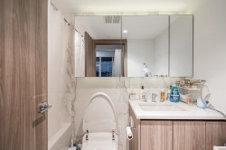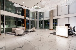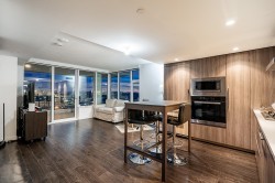 Welcome to this exceptional 3-bedroom, 2-bathroom corner unit at Concord Galleria Da Vinci by Concord Pacific. Spanning 906 SF with an expansive 290 SF balcony, this southwest-facing residence features stunning city and water views, filled with natural light. The spacious balcony is perfect for entertaining family and friends. Enjoy top-of-the-line Miele appliances and a thoughtfully designed kitchen with ample storage. Comfort is enhanced by the central air conditioning and heating system with a smart thermostat. The master bedroom boasts a smart KOHLER toilet and an auto-light closet. Amenities include a study room, Mahjong room, lounge, hot tub, concierge, and playground. Located in the heart of the city, it's just minutes from the skytrain station and diverse dining options.