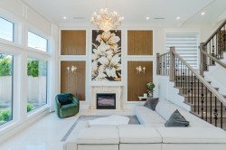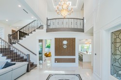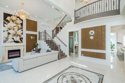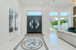 Luxury home in Richmond prestigious Seafair area, nice lot of 7920 s.f. living area of 3676 s.f. This elegant European style home features : functional layout w/f 5 bedrooms all with ensuite, 21' high ceiling foyer, spacious high ceiling family and living room with elegant designer Mosaic floral fire place, open concept leads to gourmet kitchen with a large marble island ,wine cellar,& outdoor BBQ area for refined entertaining. Good sized wok kitchen, media room and a guest bedroom. Upstairs 4 spacious bedrooms , two with porch & balcony. Quality built w/f air conditioning, radiant heat, HRV, Miele appliances, Wolf range etc. Convenient location close to Hugh Boyd Secondary School, Seafair Shopping Mall , Community centre, transits and dyke.
