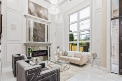 This remarkable new home rests on a SOUTH-facing 69x126 lot in the desirable Saunders neighborhood. Inside, grand ceilings in the living and family rooms combine with UV-filtering windows to fill the interior with abundant daylight. Sparkling crystal chandeliers enhance the sense of luxury throughout. The gourmet kitchen is a chef’s delight, showcasing premium Miele appliances, a large island plus full spice kitchen with pantry and Samsung smart fridge. The main floor includes a media room for family fun & guest room with ensuite—perfect for visitors or convertible into a 2-bedroom rental suite. Upstairs, 4 spacious bedrooms all have private ensuite. The primary suite features a designer walk-in closet, private sauna, and steam shower for spa-level comfort, complete with 3-car garage