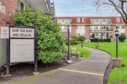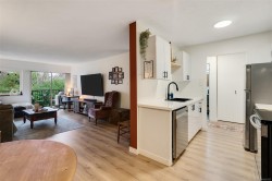 Renovated one bedroom condo at Colony Park Manor next to Mt Tolmie in Saanich! Large 740sqft floorplan features 21x13 living room for cozy movie nights plus 13x5 balcony with green outlook. Unit has been renovated with laminate floors, updated kitchen with new cabinets, countertops, appliances and backsplash, vinyl windows, bathroom with tile floors and new vanity. Nothing to do but move in and enjoy! Large 5x4 in-unit storage room plus separate storage locker for all belongings, bike storage and parking stall included. Strata fee $436/m includes heat and hot water and property taxes for 2025 were $106m after homeowner grant for reasonable monthly expenses. Great location a short walk to UVic or Camosun, bus routes, shopping and all levels of amenities just out your door! Building is very well maintained with newer balconies, well run strata with solid depreciation report and numerous amenities including indoor swimming pool