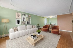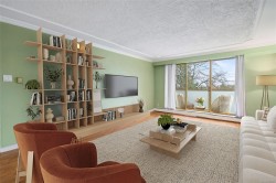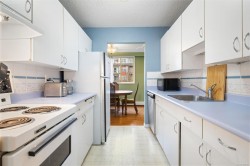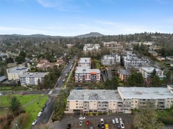 Bright and spacious 2-bed, 2-bath corner unit offering exceptional value in a prime central location. This west-facing home is filled with natural light and enjoys peaceful views overlooking Rutledge Park. The well-designed layout includes a dedicated dining area, comfortable living space, thoughtful separation of bedrooms and a private balcony. Elegant crown mouldings and ceiling details add warmth and character to the space. This professionally managed complex offers outstanding amenities, including a resident caretaker, sauna, gym, woodworking room, large common workshop, community lounge with billiards table -- and heat and hot water included in the strata fee! Located steps from Rutledge Park, walking distance to Mayfair Mall, close to schools, shopping, coffee shops, Uptown and major bus routes. Downtown Victoria is only five minutes away, with UVic and Camosun College just ten minutes by car — an ideal home for lifestyle and convenience.