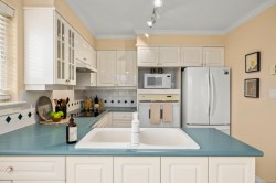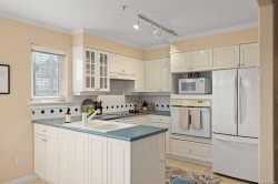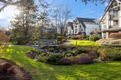 Welcome to Broadmead Terrace. This southeast corner, two-bedroom, two-bath second-floor home overlooks Rithet’s Bog with gorgeous, peaceful greenbelt views and excellent natural light.The functional layout offers good separation, with bedrooms and bathrooms on opposite sides of the open living space. Generous living and dining areas feature crown mouldings and a gas fireplace.The kitchen includes an eating area and opens to a private patio overlooking the bog. The primary bedroom fits a king-size bed and offers a full ensuite with soaker tub, separate shower, and dual closets. A large laundry room with sink is complemented by additional utility/storage space.Secure underground parking and a separate storage locker included. Well-managed complex with beautifully maintained grounds, water features, and gazebo.Walking distance to Broadmead Village and Royal Oak Shopping Centre, with easy access to shops, services, and transit. Immediate occupancy available.