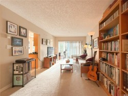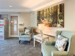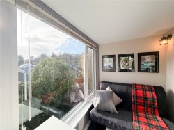 Take this opportunity to own one of the largest 1-bedroom units in this 55+ building! With over 800sqft of living area, this bright, top-floor home offers exceptional space, privacy, and a beautiful green outlook from the quiet, south side of the building. Thoughtfully updated with oversized rooms, in-suite laundry, a sunny eat-in kitchen nook, and an enclosed sunroom with views of Mt. Tolmie that you can enjoy in every season. Tucked away from street noise yet just a short walk to shops, services, restaurants, and transit right outside your front door. Located in a sought-after 55+ building, where small pets are welcome. Comfort, privacy, and convenience all in one!