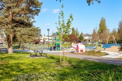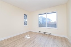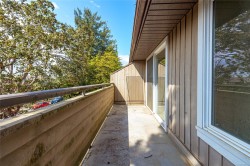 2-level, top-floor corner unit offers the spaciousness & feel of a townhouse w/2 balconies. This family-friendly complext is part of a well-managed strata. Bright spacious living room boasts a vaulted ceiling for an airy feel & a cozy wood-burning fireplace perfect for those cool winter eves. LRG kitchen layout w/eating area.Updates include new flooring, fresh paint throughout, & thermopane windows/doors. Large MSTR BR is located next to the 3 PC BA, & the versatile “dining area” can easily convert into a 3rd BR, complete w/private balcony & closet. Upstairs, the LRG BR features a skylight closet & a 2 PC BA, could be used as a BR, office or family room. Enjoy ample storage space, including a separate storage locker. Bonuses include a common guest suite & free laundry. This centrally located unit is within easy walking of distance of both Mayfair & Uptown malls, & is located on a direct busroute with easy access to UVIC & Camosun College, this one is definitely an ideal location.