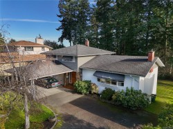 SOUGHT-AFTER CORDOVA BAY FAMILY HOME! Meticulously cared for custom designed for for the original owner, this quality built, 1965 2,200sf Cordova Bay family home offers 4 beds, 3 baths, and a nod to mid-century charm. The elegant entry leads to a formal living room with wool carpeting, feature fireplace leading to a separate dining area. The kitchen is ideal for entertaining with a breakfast nook overlooking a cozy family room with a gas fireplace and access to the sunny deck with ocean glimpses. Updates including bathrooms, gas hot water heating and on-demand system, make this home move-in ready. The walk-out unfinished basement provides a work bench, utility sink and lots of additional space and potential, with a single garage door accessed from the backyard and ample storage in the mid-height crawlspace. Enjoy the sunny, level lot in a prime Saanich location near shops, schools, trails, and sandy beaches just minutes away. A rare opportunity to make this special home your own!