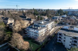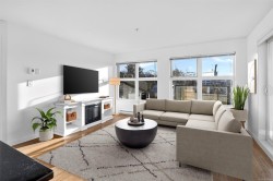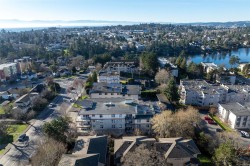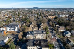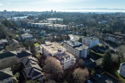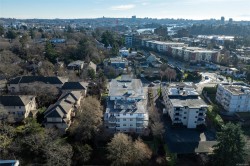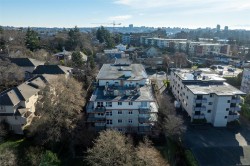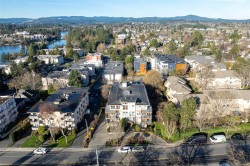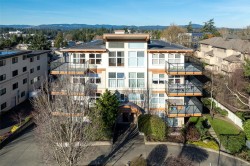 Welcome to this bright top floor, southeast corner suite in Harriet Gardens. This well designed 2-bedroom, 2-bath condo offers a comfortable living space with excellent natural light throughout the day. The open concept living and dining areas flow seamlessly to a generous wrap around balcony, where sweeping views of the Olympic Mountains and Sooke Foothills create the perfect backdrop for your morning coffee or evening sunsets. The primary bedroom features a walk-in closet, vaulted ceilings, and ensuite, while the versatile second bedroom works well for kids, guests, or home office. Secure underground parking, separate storage, bike storage, rooftop patio, and a professionally managed strata provide convenience and peace of mind. Centrally located in the Gorge neighbourhood near shopping, transit, the Gorge Waterway, and the Galloping Goose Trail. With easy access to downtown Victoria, this top-floor corner home offers exceptional value, and privacy all in a sought after location.