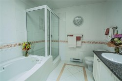 Discover an executive penthouse nestled in the forest, perfect for those seeking a harmonious blend of West Coast charm and European sophistication. Experience an executive penthouse in the forest that seamlessly blends West Coast charm with European sophistication. This exceptional unit boasts stunning ocean and mountain views, featuring a unique interior with high-end renovations. Enjoy a custom walk-in closet, a kitchen with Italian neolith and quartz countertops, a high-end Murphy bed/office set, and pot lights throughout. Electric skylights provide a refreshing breeze, while luxury appliances, Italian ceramic floors, and silk blend carpets add modern elegance. Greet local eagles soaring by as you dine. New roof. Convenient trails and amenities are around the corner—schedule your showing today!