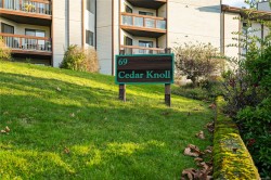 New Price! Welcome home to this bright, top floor condo in the popular Cedar Shores Complex. This spacious two bedroom unit includes a large primary bedroom with ensuite, open full-sized kitchen, in suite laundry, wood burning fireplace and a peaceful sunny closed in deck connecting you to nature. Set in a resort style complex which is centrally located and set by the waters edge with beautifully landscaped grounds offering a private waterfront picnic and barbeque area, swimming pool, hot tub, party room, and walking trails. Paddlleboard into town from your own backyard or get a garden plot at the community garden right next door! There is also an on site caretaker in this well managed complex. Purchase as your home, or have it as an investment. Walking distance to shops and amenities, rec centre and library and easy bus routes, this home is sure to please.
