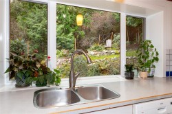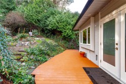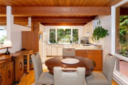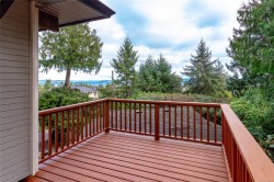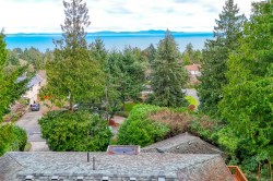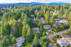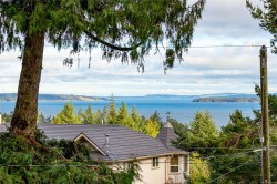 Exceptional Cordova Bay location. Large 1/4 acre private lot nestled among the trees with gorgeous ocean and mountain views. Mid century post and beam family home with over 2300sq/ft on 2 levels. Nice open concept main floor featuring a charming kitchen with a large bay window overlooking the gardens and expansive decks, a separate dining and living area with fabulous views, 2 spacious bedrooms, and an updated bath with soaker tub. Walk-out lower level offers a bright one-bedroom plus den accommodation with updated kitchen & bathroom with heated floor, perfect for extended family or teenagers. Set on a tranquil, landscaped lot with mature gardens and tranquil sitting areas, this property also features a detached double garage. Lots of updates completed in 2016, including roof, electrical, pot lights, gutters & leaf filter, 2 hot water tanks. New Heat pump in 2025. Lots of storage. Close to schools, short walk to the ocean.