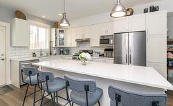 Step into #14 Hillside Terrace, where "turnkey" truly means it. This beautifully curated home is offered as a near complete package, the sellers are taking only their personal items and leaving the designer inspired furnishings and decor for you to enjoy; simply walk through the front door, hang up your clothes, and start living. Every inch of this space has been thoughtfully prepared. The main level consists of an open floor plan, shaker style cabinets, quartz countertops, an 8ft island for entertaining and a N/G fireplace to enjoy. Off the kitchen you will find one of the largest yards in Hillside Terrace, fenced for privacy with 2 patio spaces, artificial turf, garden beds and a N/G hookup for your BBQ and wired and ready for a hot tub. The upper level consists of 3 bedrooms including primary with ensuite, another full bath and laundry. The entry level has a 39'9" garage that will hold a couple vehicles or 1 and some storage for the tools and toys. There is also room to park a vehicle in your driveways. Vinyl plank flooring throughout the main floor, cozy carpeting in the bedrooms, forced air heat and A/C, space inside and out. Centrally located you can walk to schools, shopping, recreation centers, restaurants, theaters and events. The Shuswap offers 4 seasons of recreation that include summer fun on the lake and winter recreation of cross country & downhill skiing, and world-class sledding. Bring your pets as 2 animals allowed, max height for dogs is 24" at the shoulder.
