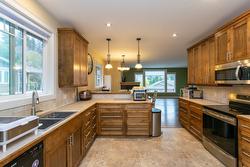 Tucked in the quiet Willow Cove bare land strata, this well-kept 2007 home delivers something increasingly rare: privacy with room to breathe. The backyard is your proof, fully enclosed by a mature cedar hedge and backed directly by Hoadley Park. No houses behind you. No fences staring back. Just a quiet green space backdrop. Inside, the main level's open plan is framed by large south-facing windows that flood the living and dining areas with natural light. Three bedrooms anchor the main floor, including a comfortable primary suite with a five-piece ensuite and walk-in closet. Downstairs, the finished basement adds generous storage, a family room with wet bar, and a flexible room off the garage that could be adapted to serve as a fourth bedroom or workshop space -whatever your household needs it to be. The owners have replaced the bedroom carpet with vinyl plank flooring to make daily life easier. The attached double garage handles all your gear and then some. Willow Cove is exceptionally well run, with a robust contingency reserve fund. Owners look after their own lots but share snow removal, road maintenance, and common insurance for $800 a year. It's a calm neighbourhood where families and retirees coexist, ten minutes from everything in Salmon Arm. A practical, bright home in a setting that values privacy, community, and simplicity.