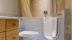 Immaculately cared for 2 bedroom with a flex/office room, 2 bathroom, ground level townhome overlooks a central courtyard. The open design for living, dining and kitchen areas feature a natural gas fireplace, sliding door to sunny patio & covered sitting area allowing plenty of light. Kitchen has beautiful appliances, tile accents and convenient for entertaining. Principal bedroom has a walk-thru closet to a 4 pce. bath w/incl. a walk-in tub & shower. Second bedroom includes a Murphy bed. Laundry - washer/dryer with some storage. Separate storage room. Easy rear access to covered parking. Check out the virtual tour!