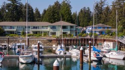 Stunning views with a spacious floor plan. Welcome to Port Stalashen, Sechelt's premier seaside development. Nearly 1500 square feet on 1 level with stunning South views of the marina, shoreline, and the Salish Sea. The unit is 1 level, open and spacious with a large living and dining area facing the marina and the lovely shoreline across the bay. A painter could find inspiration every day from the ever changing views. This unit is ideal for a person with mobility issues; easy accessible at all times.