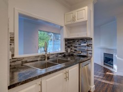 Step inside this partly updated level entry townhome and enjoy a layout designed for both comfort and convenience. Wood flooring runs throughout both levels, with soft carpet reserved only for the staircase. Upstairs, both bedrooms feature private ensuites, ideal for hosting guests with ease. The cozy gas fireplace anchors the main living space and can be enjoyed from the kitchen, dining area, and living room. The modernized kitchen and crown molding throughout the main floor add touch of class. Sliding glass doors open to a spacious south facing backyard and patio, an ideal spot for morning coffee. Recently painted and move in ready. Double garage. Walkable location close to bus route, shopping, marina, recreation center & a wonderful selection of culinary options.