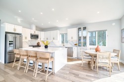 Modern coastal living with unforgettable views — Enjoy both ocean and mountain vistas from this private 1.5-acre gated and fully fenced property. The bright, open-concept interior features a designer kitchen with quartz countertops, quality appliances, and stylish fixtures. A spacious living area with large windows fills the home with natural light and frames the stunning surroundings. Three generous bedrooms and a spa-inspired bathroom provide ultimate comforts. Step outside to a massive deck, private spa, and outdoor bar/lounge—perfect for entertaining or relaxing. There’s ample space for gardening and outdoor activities or future expansion. Bonus: A separate suite ideal for rental income or guests plus an expansive 1,100 sq ft garage.