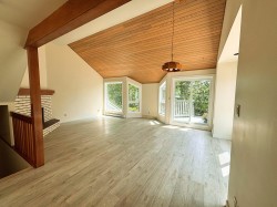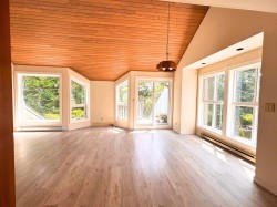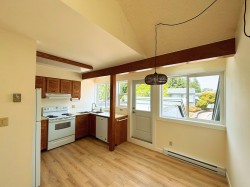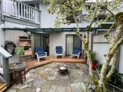 3-bed, 2-bath end-unit townhome just blocks from downtown Sechelt and across from beach and boat launch. This rare architectural gem offers 1,400+ sq ft with vaulted ceilings, exposed beams, and stunning natural light through updated windows. The reverse plan features 2 BR on the main level that walk out to a private patio, plus a top-floor suite ideal for guests or a home office. The main level features a spacious great room with a cozy wood-burning fireplace, vintage oak kitchen cabinets, and a deck off the kitchen with mountain views—perfect for BBQs. Pets (1 dog or cat) allowed. New floors throughout add to the fresh, stylish feel. A great opportunity for investors or first-time buyers—this could rent and cover ownership costs. Don't miss this one!
