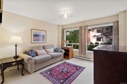 OPEN HOUSE - Sat & Sun Feb 14 & 15 - 11 - 12:30 - Rarely available in this well-managed building, this spacious 2 bedroom, 2 bathroom NE corner suite offers the ultimate Sidney lifestyle. Steps to shops, restaurants, cafés, and the waterfront, the location couldn’t be better. Large windows flood the home with natural light, highlighting the open living/dining area with cozy fireplace. A covered balcony surrounded by greenery feels like a private forest retreat—perfect for bird watching. The generous floorplan offers more space than most condos, with a large kitchen featuring stainless steel appliances, granite countertops, and built-in buffet. The primary bedroom includes three closets and an ensuite with granite counters. Ample storage throughout completes this rare offering. A bright, spacious home in the heart of Sidney—don’t miss it!