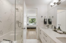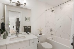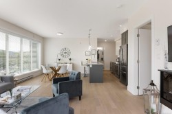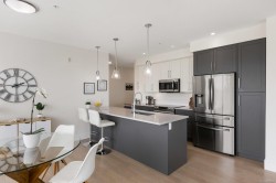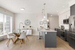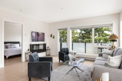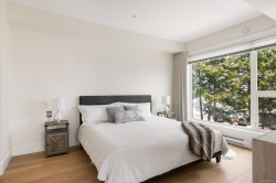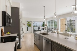 Experience the best of seaside living in this elegant 2-bed, 2-bath condo in vibrant downtown Sidney. Beautifully appointed, the condo offers ocean views. Inside, you'll find high-end finishes, oversized windows, and a chef-inspired kitchen featuring stainless steel appliances, a quartz island, and abundant storage. The open-concept layout is ideal for entertaining, with seamless flow between the kitchen, dining, and living spaces. The spacious primary bedroom includes a walk-through closet and a luxurious 5-piece ensuite bath. Step onto your private deck to enjoy morning coffee while taking in sunrise views over the water. Additional highlights include fresh paint, blackout blinds in the bedrooms, roll-out kitchen drawers, secure parking, and a storage locker. With no age restrictions and just steps from Sidney’s vibrant shops, restaurants, and waterfront boardwalk, this condo offers the perfect blend of luxury and location. A must see opportunity!