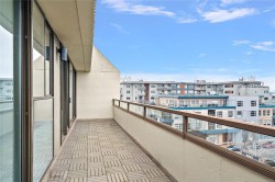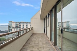OPEN HOUSE - Sun. Feb 1- 1:00pm - 2:30pm - Welcome to 503-9805 Second Street, a fifth-floor water view condo in the heart of downtown Sidney. This bright & spacious updated 2 bed, 2 bath home offers 1,221 sq.ft. of living space & a generous 200 sq. ft. deck, perfect for enjoying marina & ocean views. Located in the popular concrete Landmark Building, just one block from the waterfront, this condo places you steps from Sidney’s vibrant shops, cafes, & dining. The large primary suite features a 3-pc ensuite with ample cabinetry & a walk-in closet with organizer. The updated kitchen offers solid surface countertops, tile backsplash, & plenty of cupboard space, while both bathrooms feature marble countertops. Additional features include in-suite laundry with storage, secure underground parking, bike storage, a separate storage locker, a building library, & a welcoming lobby ideal for gatherings. Enjoy the best of the Sidney-by-the-Sea lifestyle with everything at your fingertips.