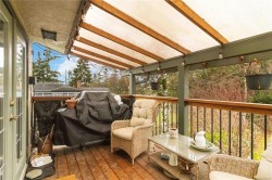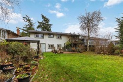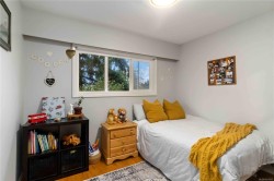 Bright and welcoming 4-bedroom, 2-bath home offers a functional layout in a friendly Sidney neighbourhood. The main level features a large living room with an oversized picture window and cozy brick-accented fireplace. The layout flows seamlessly into the dining area with double French doors leading to a covered deck overlooking the lush private backyard. The generous cook’s kitchen includes ample counter space, ss appliances, and an eat-up bar—perfect for busy households and entertaining. The primary bedroom is decorated in soft, calm tones; two additional bedrooms and a large main bathroom complete the upper level. Downstairs is a versatile space offering suite potential, including a large rec room, flexible office/hobby room, fourth bedroom, full bathroom, and unfinished laundry room. Set on a flat, sunny, west facing lot on a no-through street, this home is ideally located near schools, parks, grocery stores, and all the Sidney amenities.