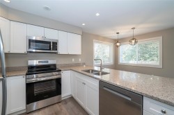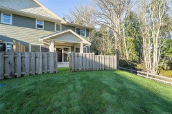 One of the best-positioned homes in the Grasslands townhome complex, this bright corner/end-unit backs and sides onto forested greenspace, offering excellent privacy and a peaceful West Coast feel.The open-concept main floor features quartz countertops, stainless steel appliances, a spacious dining area, bright living room, and a convenient 2-piece powder room. Step outside to the covered patio and fully fenced backyard with a gas BBQ hookup.Upstairs offers three bedrooms, two full bathrooms, and laundry. The primary bedroom includes a walk-in closet and ensuite with quartz countertops and a walk-in shower. Additional features include hot water on demand, a single-car garage, and driveway parking.Ideally located on Charters Road within walking distance to schools, parks, golf, transit, shopping, restaurants, oceanfront trails, and Sooke’s town core.