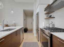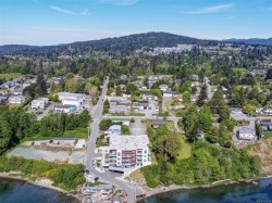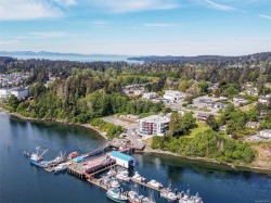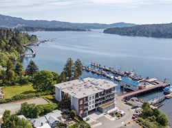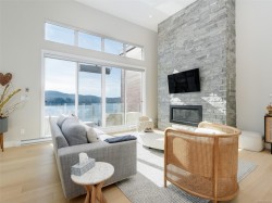 Experience an unparalleled quality of life by the seaside with this luxurious Penthouse 2 Bed 2 Bath southeast facing corner suite. You will love the 2 fabulous, private oceanview balconies, one with a specially installed overhead heater. The contemporary open floorplan boasts an expansive kitchen & separate dining area. The entertainment size living room features 14 ft vaulted ceilings & a spectacular floor to ceiling Gas Fireplace.Huge picture windows welcome in the morning sun & showcase unobstructed views of Sooke Harbour, East Sooke & Olympic Mountains. Upgraded features incl air conditioning, Caesarstone countertop & back splash. The 5pc ensuite is equipped with double vanity, a soaker tub, oversized shower, & heated floors. Amenities are plentiful, including 2 parking spots, 1 secured underground & one covered, bike & separate private storage, kayak storage with ocean access just steps away, a private gym with ocean views, & 2 EV charging stations. A rare find in today's market!