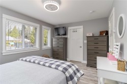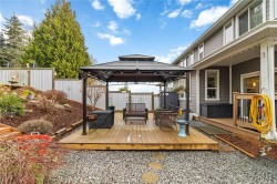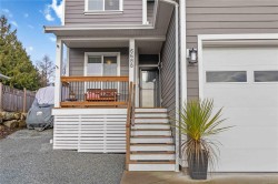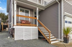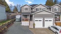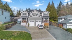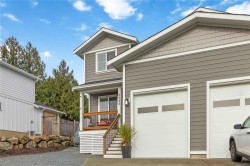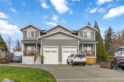 Nestled in a friendly, family-oriented neighbourhood, this lovely home is just minutes from the heart of downtown Sooke, with easy access to shops, restaurants, parks, and outdoor recreation. Offering over 1,550 sq ft of comfortable living space, generous outdoor areas, and picturesque mountain views, this property truly stands out in today’s market! The main level features a bright, open-concept layout with a cozy gas fireplace in the living room and a well-appointed kitchen with quartz countertops. A versatile den adds flexibility as a home office or potential fourth bedroom. Upstairs, you’ll find three spacious bedrooms along with a conveniently located laundry room. The primary suite is a relaxing retreat, complete with a walk-in closet and large ensuite with heated floors. Outside, the backyard is perfect for entertaining or unwinding, with a back deck already plumbed for a gas BBQ. Manicured large 7,000+ sq ft lot, there’s plenty of room for kids, pets, and even RV parking!