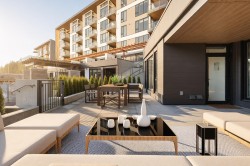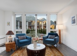 Incredibly unique with one of the largest floor plans and outdoor patios in the development. This 1,055 sq/ft, 2 bed + den, 2 bath condo features a heat pump and an expansive patio of nearly 700 sq ft, offering almost 1,700 sq ft of total living space. With mountain views, high end finishes and no neighbours above, below, or beside, as well as private ground-level access, it lives like a detached home. Combined with the proximity to trails, downtown and Redbridge's 20,000+ sq ft of amenities including - yoga room, a full gym, sauna/hot tub/cold plunge, outdoor kitchens, co-work space, workshops and much more this home is truly unparalleled in Squamish.