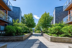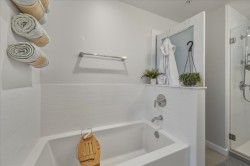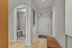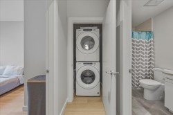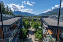 This stunning two bed, two bath condo is ideally located in the back corner of the building boasting privacy, peace, nature and views. Elevated above the town’s noise yet right on the trails, it offers the soothing sound of a forest creek, cozy winters by the gas F/P, and stays perfectly cool in the summer. Enjoy mountain views from the spacious ensuite, or even catch meteor showers and the aurora borealis from bed. (True story!) The primary walk-in closet has been upgraded with adjustable California Closets shelving and the oversized balcony are just a few of the perks. Included is one large parking stall with EV charger, a bike locker, and a storage locker. Enjoy access to a shared rooftop deck, car wash area, and bike/dog wash. All you have to do is move in!