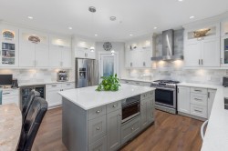 Looking for a custom-built home on a quiet street with fabulous mountain views? Then look no further! This outstanding 3 bedroom/2 ½ bath home plus a nanny suite in family friendly Ravenswood is your dream come true. Lots of space for a growing family & with a fully fenced yard. A turnkey home with an outstanding functional & open floorplan. Lots of natural lighting throughout. All bedrooms are large & upstairs with Laundry. Exceptional finishes throughout: large island with custom cabinetry & lot of storage & bar seating, gas stove, sleek stainless chimney style vent, gas forced air furnace. Double garage. Situated close to Brennan Park Rec Centre, shopping, and transit. This home is a MUST SEE. Call now to view.