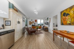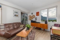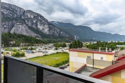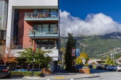 VIEWS, VIEWS & VIEWS. Howe Sound, Chief and Mountain beauty views await you from this top floor 1 bedroom condo, which is undoubtedly the best one bedroom in the building for views and natural light! Neatly appointed and well laid out floorplan with lots of bright south facing sunlight. With modern open plan modern living, this would make a great first home or investment buy with the future Oceanfront development just steps away! This is such a convenient location in Downtown Squamish and walking distance to all your everyday amenities like groceries, pharmacy, library and restuarants. Only 40 minutes to the North Shore and 40 minutes to Whistler!! Call for your private showing today!