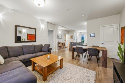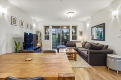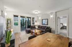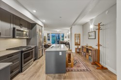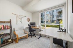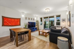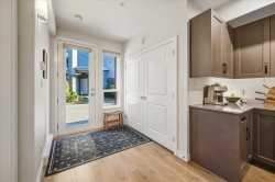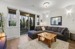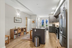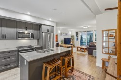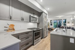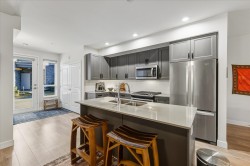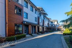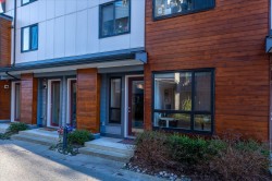 RARE two bedroom townhouse at Soleil in Coastal Village situated steps from the estuary on a quiet, private cul-de-sac! Beautiful modern townhouse with a great open plan living space w/ 9ft ceilings, SS appliances, quartz counters, shaker cabinets, gas range, large windows, two bedrooms + two full baths with east and west exposures. Coveted 2 parking stalls, large storage locker, common bike room plus in-suite storage. Part of a master-planned community situated next to trails in a peaceful setting yet close to all amenities Downtown, library, Farmer's market, marina + Feather Park at the waterfront. Enjoy living in this SW corner of Downtown with the estuary as your neighbour. Don't miss this gem!