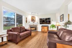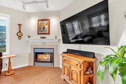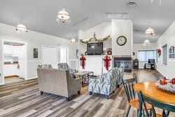 kitchen, dining, and living room where you can enjoy a beautiful gas fireplace. This unit also