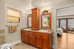 Experience unparalleled luxury and panoramic lake views in this executive 3-bedroom plus den rancher-style townhome with a basement, located in the coveted Tuscan Terrace community in Summerland! Resting on a hillside overlooking parkland and the sparkling waters of Okanagan Lake, this 3,800+ sq. ft. home offers a front-row seat to one of the most breathtaking vistas in the region. The bright, open floor plan is designed to maximize the view, with oversized doors and windows flooding the space with natural light. Main-floor living includes a spacious living room with a gas fireplace, a chef’s kitchen with granite countertops, newer appliances, and a walk-in pantry, as well as a primary suite, a complete oasis with access to a covered deck to enjoy the stunning scenery, and a 5-piece ensuite bathroom featuring a soaker tub, dual sinks, and glass encased shower, with a huge walk-in closet. The walkout basement features additional bedrooms, a fully-equipped and spacious summer kitchen ideal for guests or in-laws, a media room, and seamless access to outdoor living spaces with a private hot tub and pet-friendly green space! This lakefront gem has all the perks including a huge covered deck, attached garage, complete with an elevator, combining elegance, comfort, and accessibility in one of the most picturesque locations in the Okanagan.