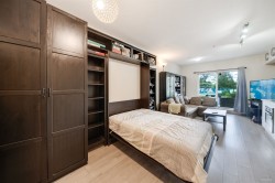 Investor Alert! Well-designed ground-level studio with a fantastic long-term tenant who would love to stay. Features include vinyl plank flooring, tile bathroom, custom built-in Murphy bed, wall-to-wall cabinetry, and built-in appliances for maximum efficiency. Enjoy a spacious southwest-facing patio, plus secure underground parking and storage locker. Pet- and rental-friendly building in the heart of Whalley/Bolivar Heights, Surrey’s rapidly growing downtown core—steps to SkyTrain, shopping, and amenities. Excellent value and future upside!