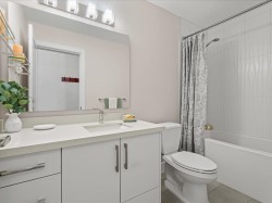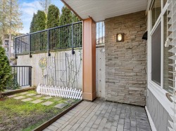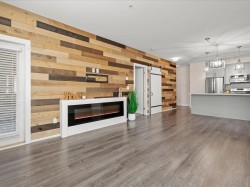 CRESCENDO - Welcome to this bright and modern 2 bed/2 bath ground-level corner suite offering 1010 sqft of spacious living in the heart of South Surrey. With direct outdoor access to the street and a fully fenced yard, this home offers a lifestyle ideal for those with children, pets or anyone seeking easy indoor-outdoor living. Two patios enhance the indoor-outdoor lifestyle, including one off the primary bedroom. Inside, enjoy a thoughtful layout with bedroom separation and an impressive reclaimed barn wood feature wall with 72” customizable color-changing electric fireplace for warmth and ambiance. Includes two underground parking stalls and is pet friendly. A fantastic ground-floor opportunity with outdoor space, privacy and everyday convenience close to shops, parks, and amenities.