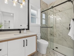 Presenting ALARA II by Symbolic Construction Group. This exclusive collection of front and back duplex homes offers luxury living without the burden of STRATA FEES. Each front unit is a 4 bed, 4 bath residence, thoughtfully crafted w/high end finishes, featuring 9ft ceilings through out, expansive windows for abundant natural light, quartz countertops, premium appliances built in entertainment unit & security, AC, & energy efficient natural gas heating built with STEP CODE 4 in mind. Tiled baths & elegant accent walls add a sophisticated modern touch. Enjoy 3 spacious levels of living, complete w/a large recreation room, a full bathroom, & an additional bedroom perfect as a mortgage helper. The detached garage is equipped w/220 volt power. Don't miss the chance to secure your dream home!