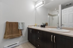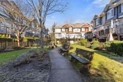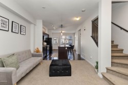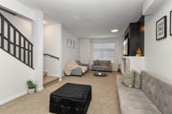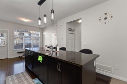 Discover the ideal blend of style and functionality in this beautifully appointed 3-bedroom, 3-bath Clayton townhome. Thoughtfully designed, it features a double tandem garage, a convenient main-floor powder room, and a pantry for added storage. The inviting living area showcases a gas fireplace with custom built-ins, creating a warm and welcoming atmosphere. The maple kitchen is finished with laminate flooring, granite countertops, and an eating bar, and opens onto a sundeck overlooking a peaceful courtyard and walking trail—perfect for relaxing or entertaining. Upstairs, the spacious primary bedroom offers a private ensuite with double sinks for added comfort. Ideally located close to parks, schools, shopping, and the recreation centre, this townhome delivers a balanced and comfortable.