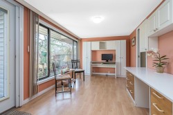 Location, location, Village Terrace in South Surrey / White Rock. Unique style Rancher open floor plan. Sunken living room w/ gas fireplace (gas incl. maint. fees), unique 2 bed, 2 full bath condo with enclosed solarium, can be your Den/office, Yoga room, or double as a 3rd Bedroom. Close to all amenities, backs onto sprawling Bakerview park, White rock beach within walking distance, golf, features in-suite laundry, ample-sized rooms and closet space, kitchen pantry, 1 parking stall #70 & storage locker #112. extra parking spot can be rented. Complex includes a workshop, amenities room with billiards and shuffleboard tables, bike area, and 2 community barbecues. Updated landscaping, fences, walkways and lighting. Extra parking available for rent. Easy to show anytime. Vacant.