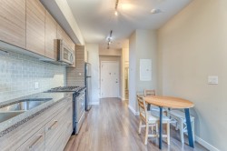 As you step into this studio, you'll be greeted by an open and well-designed living space. This garden facing studio 1 bed maximizes every inch to provide a comfortable and stylish living environment. The main living area is thoughtfully laid out, allowing for seamless integration of a living room, bedroom, and kitchen. Large windows let natural light flood the space, creating a bright and inviting atmosphere. The kitchen has modern appliances, sleek countertops, and ample storage space. The bedroom is cleverly designed to provide privacy and a serene setting for a good night's sleep with enough space for a comfortable bed and space for additional furniture. You will love the modern bathroom feat. a large tub. Bldg has a gym, party room and a relaxing garden. 1 parking 1 locker. Call NOW.