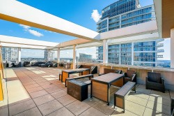 THIS HOME OFFERS A VERY FUNCTIONAL 1-BEDROOM PLUS DEN WITH SLIDING WALL SYSTEM LOCATED IN DOWNTOWN SURREY. FEATURES QUARTZ COUNTERTOPS, STAINLESS APPLIANCES. GREAT SOUTHERN VIEWS ON YOUR 13' X 6' DECK. COMPLETE WITH GORGEOUS ROOF TOP DECK AND BBQ AREA, LOUNGE PARTY/ROOM. WAVE FEATURES CUTTING-EDGE ARCHITECTURE, WITH EACH FLOOR CURVED DIFFERENTLY THAN THE ONE IMMEDIATELY ABOVE OR BELOW IT, IMPARTING A GRACEFUL WAVE SHAPE TO THE ENTIRE BUILDING. CONVENIENTLY LOCATED IN SURREY DOWNTOWN, CLOSE TO SKYTRAIN SURREY CENTRAL SHOPPING MALL, SFU CAMPUS, KWANTLEN, HOLLAND PARK, AND THE LIBRARY.