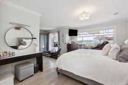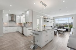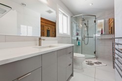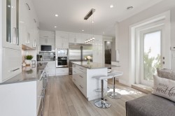 Tucked away at the end of a peaceful cul-de-sac, this beautifully updated home sits high on a hill, offering incredible views from every angle. Upstairs boasts four generous bedrooms, each paired with its own private bathroom — perfect for a growing family or guests who like their space. The heart of the home is the impressive chef-inspired kitchen, designed with high-end appliances and loads of space for cooking, hosting, and hanging out. Head outside to a massive deck complete with a built-in outdoor kitchen and a relaxing hot tub — your year-round hangout spot. The lower level includes a fully self-contained 2-bedroom suite, ideal as a mortgage helper or a cozy place for extended family. With a prime location, smart floorplan, and stylish renovations throughout.