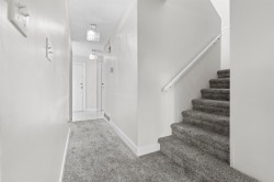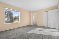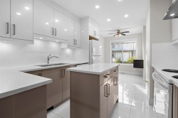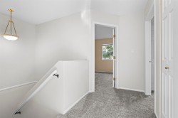 Welcome to Creekside Village! This beautiful, 3 Bed 3 Bath, 2-level family townhome is well maintained and includes a plethora of upgrades from 2021 including a renovated kitchen, carpet, paint, toilets and tiles. The thoughtful layout balances open, shared spaces with private bedrooms, making it ideal for family living. Ground floor includes a family room with natural gas fireplace, half washroom, kitchen, and dining area and upstairs features 3 well-sized bedrooms and 2 full washrooms. Enjoy summer BBQs in your private fenced backyard with a concrete patio. Parking includes a single car garage and an uncovered parking pad at your front door for added convenience. Located within walking distance to Bear Creek Park and public transit, and a short drive to schools, shopping and recreation.