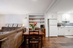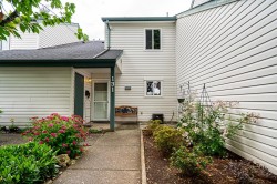 HYLAND CREEK ESTATES. Lovely 3 bedroom, two level townhome, with fully renovated kitchen, backsplash, quartz countertops, new appliances, renovated bathroom, laminate flooring, new windows and fresh paint. This is a fabulous starter home for a young family or the perfect investment home, no age or kid restrictions. The floor plan is open and extremely functional. Enjoy the large, private deck directly from your main floor. Perfect indoor/outdoor year-round enjoyment! Wonderful family oriented complex. Walk to all levels of schools, transit, and daily amenities. Solid complex with low strata fees, outdoor pool, club house, and sport court. In suite laundry, storage and 1 car parking here as well. Plenty of visitors parking in complex close to unit & RV parking