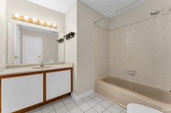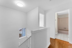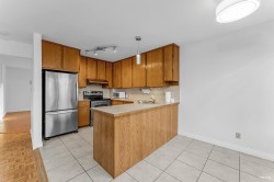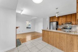 Well-maintained end-unit townhome offering generous living space and excellent functionality. The upper level features two large bedrooms and a full bathroom, while the basement includes a spacious recreation room with a full bathroom, which can be used as a third bedroom. This home offers large principal rooms, a bright and spacious kitchen with eating area, and a private backyard. Two parking spaces included for added convenience. Ideally situated steps to transit and close to excellent schools, parks, and amenities! Updates: Entire unit has been freshly painted, New LED lighting installed throughout, fully renovated basement bathroom First open house Jan 17 @ 1-4pm + Jan 18 @ 2-4pm
