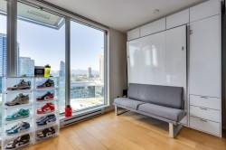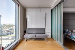 PRICED TO SELL! CORNER UNIT ON THE 16TH FLOOR! This unit offers 2 murphy beds and a pull out dining area, also has sliding walls that gives option to make it 2 bedrooms. Open concept layout, 9' high ceilings, S/S Appliances, hardwood floors, & lots of windows for Natural light!! The amenities include a full gym, yoga studio, massage room, sauna, steam room, study rooms and more. Conveniently located just minutes walk away from Surrey Central Skytrain Station, Central City Shopping Mall, SFU, KPU, cafe's, Holland park and much more.