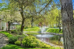 Mayfield Green! Beautifully fully updated ground-level corner Townhouse in desirable gated Complex. Central location, walk to Guilford mall, restaurants, banks and cinema. This much desired community is quiet and well maintained. Loads of natural light, nook and large formal dining area. Livingroom features cozy fireplace for the cool winter evenings. Upgrades include amazing laminate flooring, updated kitchen and both bathrooms with heated floores. Golfers, a putting green!! A MUST see, you will not be disappointed.
