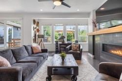This Cloverdale Gem is truly a showstopper! Nestled on a 7125 sq ft Corner south facing lot. 2411 sq ft of beautiful living space with 3 bedrooms & a stunning den on main floor. The open layout features warm paint tones & loads of upgrades including, furnace & AC, Vinyl windows, upgraded plumbing, bathrooms, flooring & breathtaking kitchen for entertainers! Sunken living room with custom gas fireplace mantle. Great open dining space with double doors leading to fantastic private upgraded back deck, Perfect for a morning coffee. Chefs dream kitchen w stainless steel appliances, gas range, custom cabinetry & island. Bonus side family room would be a great media space. Upstairs has beautiful master suite w views of Valley on private deck! Massive driveway w RV parking! 10 out of 10!